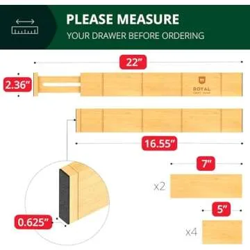 ROYAL CRAFT WOOD Adjustable Bamboo Drawer Dividers Organizers (17" - 21.5") with Inserts - Expandable Drawer Organization Separators for Kitchen Large Utensils, Clothes, Bedroom, 4-Pack