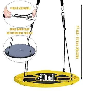 Royal Oak Saucer Tree Swing,Giant 40 Inches with Carabiners and Flags, Heavy Duty 1680D Oxford Fabric,700 lb Weight Capacity, Steel Frame,Waterproof, Easy Install Step by Step Instructions (Yellow)