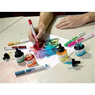 When compared to other liquid watercolors on the market, the Royal Talens Ecoline stands out due to its exceptional color quality and user-friendly design. While many competitors may offer vibrancy, they often lack the same transparency or lightfastness, which can impact the longevity of the artwork. Ecoline allows for superior blending and can be reactivated with water even after drying, a feature that many competitors do not provide. This ensures that artists can continue to manipulate and adjust their work even after the initial application.