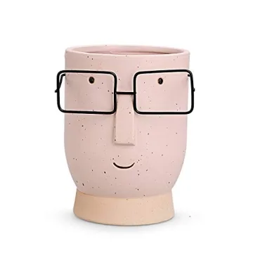 Show more Discover the adorable Royal_Z Face Planter Flower Pot, a delightful addition to your home or office decor! With its charming cute cartoon face design and funky metal glasses, this planter will instantly brighten up any space. Handcrafted by skilled artisans, each piece is made from high-quality ceramic, ensuring durability and longevity. Plus, it's dishwasher and microwave safe, making cleaning and maintenance a breeze. Measuring approximately 3.6 inches in diameter and 4.84 inches in height, it’s the perfect size for showcasing your favorite succulents, small plants, or even as a quirky utensil holder.