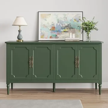 Show moreTransform your home with the RoyalCraft Sideboard Buffet Cabinet—a stunning blend of style and functionality. This exquisite mid-century modern cabinet measures 58" in length and features enchanting vintage aesthetics that seamlessly meld with your decor. Finished in a rich, dark sage green, this piece captures the essence of rustic elegance, making it a focal point in any room. Its generous tabletop offers ample space for displaying cherished items such as picture frames or decorative plants, while its cleverly designed interior allows for customizable storage solutions ideal for a variety of essentials—from books to kitchenware.