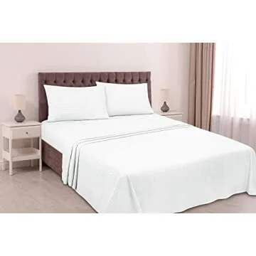 Show more Transform your sleeping experience with the unparalleled comfort and luxury of Royale Linens Striped Bed Sheet Sets. Crafted with the highest quality 100% brushed microfiber, these sheets are designed to provide exceptional breathability, making them a perfect choice for all seasons. You'll love how they hug your mattress with tailored precision; the fitted sheet measures a generous 78X80 inches and accommodates mattresses up to 16 inches deep, while the flat sheet spans 105X102 inches and comes with two matching pillowcases of 20X40 inches each.