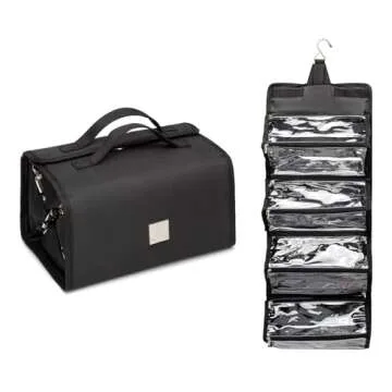 ROYALFAIR Roll Up Makeup Bag, Travel Toiletry Bag for Women with 4 Clear TSA Approved Pouches, Hanging Travel Organizer, Folding Cosmetic Bag for Men and Women (Black)