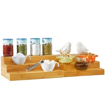 Show moreIntroducing the RoyalHouse Bamboo Expandable Spice Rack Organizer, a perfect blend of style and functionality for your modern kitchen! This exquisite spice rack is meticulously crafted from durable and sustainable natural bamboo, making it an eco-friendly choice that surpasses conventional hardwood and plastic options. With its innovative design featuring three tier expandable step shelves, you can effortlessly adjust the size to fit perfectly within your pantry or cabinet, ensuring a seamless fit for any kitchen layout.
