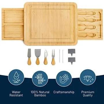 RoyalHouse Unique Bamboo Cheese Board and Knife Set with 2 Slide-Out Cutlery Drawers - Charcuterie Boards Set - Birthday Gifts for Women, Wedding Gifts for Couples 2025, Bridal Shower Gifts