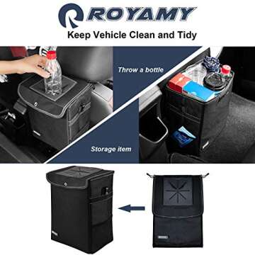 ROYAMY Car Trash Can with Lid,Car Trash Bag Hanging with Storage Pockets-Collapsible and Portable Car Garbage Can-100% Leak-Proof Vinyl Inside Lining (2.65 gal)