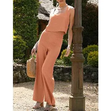 Show moreIntroducing the ROYLAMP Women's Summer 2 Piece Outfit - a must-have for your warm-weather wardrobe! This stylish two-piece ensemble features a chic sleeveless top with a square neckline and high-waisted wide-leg pants, crafted from a lightweight blend of 65% cotton and 35% polyester. Designed for both comfort and elegance, this outfit showcases a relaxed fit that’s perfect for those hot summer days, while the back pockets and invisible zipper add functional sophistication. Whether you're heading to a beach party, a wedding, or simply enjoying a casual day out, this outfit is sure to keep you looking fabulous and feeling breezy.