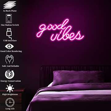 ROYOCE Good Vibes Neon Sign, Neon Lights for Bedroom Wall Decor, Pink LED Neon Signs (16 x 8 inch)