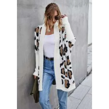ROYUNA Cardigan for Women Long Leopard Print Open Front Knit Sweater Causal Loose Long Sleeve Outwear Coat (as1, Alpha, m, Regular, Regular, White, M)
