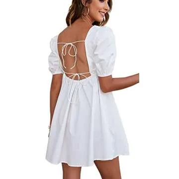 Show moreStep into the spotlight with the Rozegaga Women’s Sexy Puffed Sleeve Backless Lace Up Babydoll Mini Dress, a charming blend of elegance and flirtation designed for the modern woman. Crafted from soft and breathable cotton, this dress offers a skin-friendly wear, ensuring comfort all day long. The square neckline and flowy short puffed sleeves create a youthful silhouette, while the backless lace-up feature adds a touch of allure. Its mini length, perfect for accentuating your legs, makes it an ideal choice for various occasions—be it a summer wedding, a night out with friends, or even a casual day at the mall. Let this versatile piece be your go-to outfit that adapts seamlessly to your lifestyle!