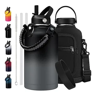 Discover the remarkable RRYFOUR 64 oz Insulated Water Bottle, the ultimate hydration companion for anyone who embraces an active lifestyle. Crafted by RRYFOUR, a brand known for its quality and innovative designs, this water bottle is not just a vessel; it’s a lifestyle enhancer. Featuring a full package of accessories including two versatile lids, a survival paracord with essential tools, a robust carrying pouch, a shoulder strap, a silicone boot, two straws, and a straw cleaner, this combo is designed...