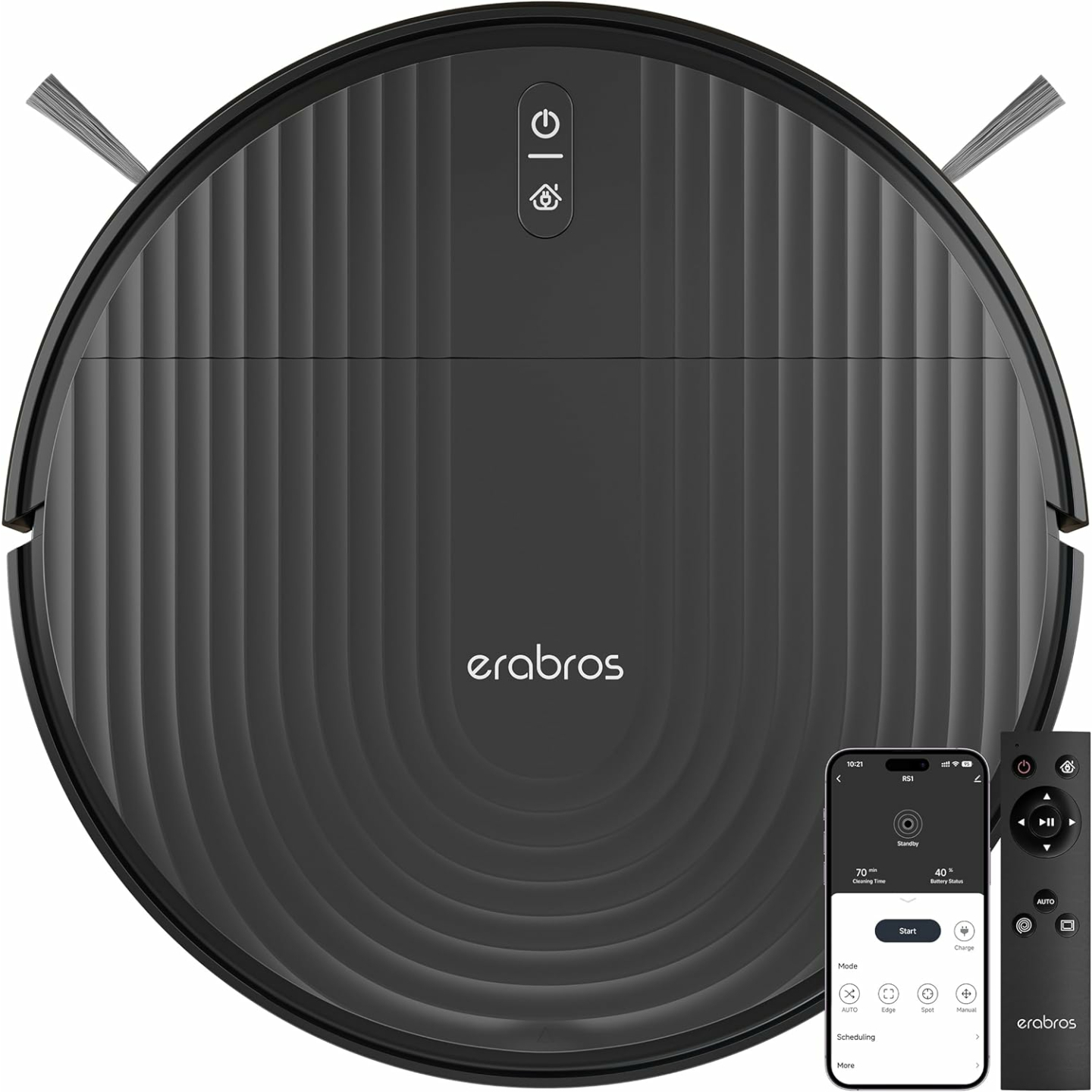 Show more Meet the RS1 Robot Vacuum, a cutting-edge cleaning device brought to you by erabrospro. This sleek and intelligent robotic vacuum cleaner is designed to make your home sparkle effortlessly. Equipped with powerful suction and advanced navigation technology, the RS1 can tackle pet hair, carpet, and hard floors with ease. One of its standout features is the brushless design that is tangle-free, ensuring that pet hair and debris don’t get caught up in the brushes, making maintenance a breeze. With a generous runtime of 140 minutes, the RS1 can clean large areas on a single charge and will automatically return to its charging dock when the battery runs low. The vacuum offers four versatile cleaning modes—auto clean, spot clean, edge clean, and schedule clean—to meet varying needs. Control is highly convenient with options to manage the vacuum through a remote, a dedicated app, Alexa, or Google Assistant. Bringing you robust performance and state-of-the-art technology, the RS1 Robot Vacuum stands as an excellent investment for any home.