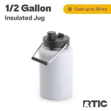 Show moreThe RTIC Jug with Handle is the ultimate companion for road warriors and outdoor enthusiasts alike. With a robust half-gallon capacity and sleek white matte finish, this large double vacuum insulated water bottle is built to tackle long journeys, whether you're hiking through rugged terrains, camping under the stars, or simply commuting. Designed from premium stainless steel, it guarantees durability and a stylish appearance that stands out while providing the functionality you need. The thermo-retentive properties ensure that your drinks stay icy cold for up to 24 hours, making it perfect for those scorching summer days when hydration is key.