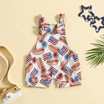 Rtnnsbbfcm 4th of July Baby Boy Girl Outfit Stars Stripes Romper Fourth of July Overalls Infant Memorial Day Clothes (America Flag, 18-24 Months)