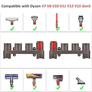 Show more Introducing the ultimate vacuum accessory solution for Dyson owners: the all-in-one docking station accessory holder! This innovative product is designed to enhance your cleaning experience by providing a dedicated space for your Dyson attachments. Wide Compatibility ensures that it can accommodate various models including the V15, V12, V11, V10, V8, V7, and the latest Gen5 and G5 series vacuums. However, it's important to note that it is not compatible with V10 slim motorized parts.