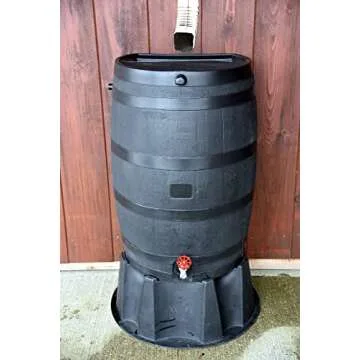 RTS Home Accents 50-Gallon ECO Rain Barrel Made with 100% Recycled Plastic, Flat Back Rain Water Collection Barrel, Stand Included, Black