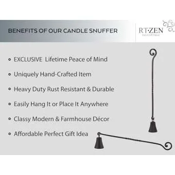 RTZEN Antique Bell Candle Snuffer - Handcrafted Decorative Rustic Wrought Iron Candle Extinguisher Candlesnuffer with Long Handle - Unique Black Matte Farmhouse Decor Accessories Gift