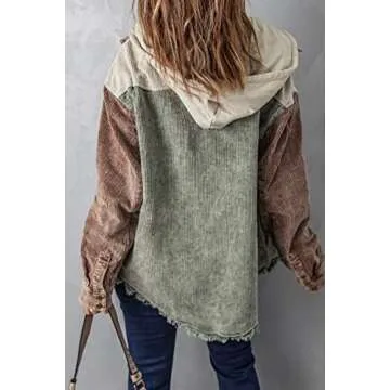 Elevate your wardrobe with the Ru Sweet Women's Corduroy Hooded Colorblock Jacket, the perfect blend of comfort and style. This hoodie jacket is meticulously crafted from soft, breathable, and durable fabric, ensuring that you stay warm without sacrificing your chic look. The oversized design gives a slouchy, relaxed feel, making it ideal for casual outings or cozy nights in. Whether you're tackling errands or out with friends, this jacket effortlessly enhances any outfit.