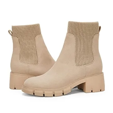 Show moreStep out in style and comfort with the Ruanyu Women's Lug Sole Platform Ankle Boots. These eye-catching boots are expertly crafted to combine fashion and functionality, making them a must-have addition to your wardrobe. Featuring a stylish platform chunky block heel and a lugged sole, these boots provide excellent support and traction for every stride you take. The elastic gore panels ensure a snug fit, so you can slip them on and off with ease, making them perfect for your on-the-go lifestyle. Designed for the modern woman, these ankle boots offer a sleek and versatile look that pairs beautifully with various outfits.