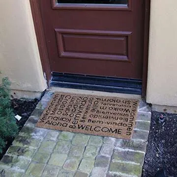 Show moreStep into your home with style and warmth using the Rubber Cal Welcome Doormat, measuring 18 inches by 30 inches. This doormat combines practicality with multilingual charm, featuring greetings in various languages that not only invite guests but also add a unique touch to your entrance. Perfect for any weather, the durable rubber construction ensures that this doormat remains intact regardless of how much foot traffic it receives, making it an ideal addition to any door.