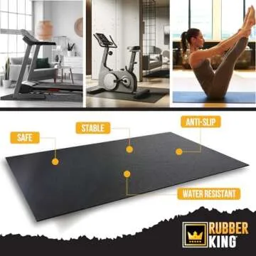 Rubber King Multi-Purpose Exercise Mat - 3' x 6' x 5mm - 100% Recycled Thick Rubber Mat for Home Gym Flooring, Non-Slip, Low-Odor Durable Workout Mat for Indoor/Outdoor, Shoe-Friendly - Black