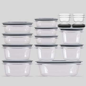 Rubbermaid 071691490951 Premier Food Storage Containers, 30-Piece Set, Gray, Transparent