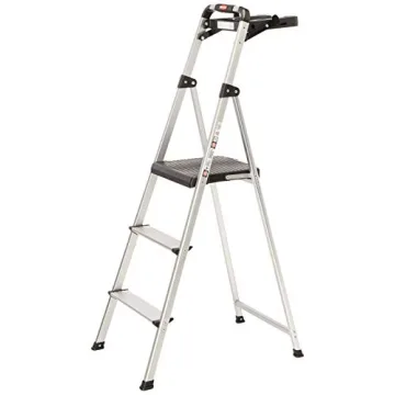 Show more Introducing the Rubbermaid 3-Step Lightweight Aluminum Ladder, the ultimate solution for all your household needs, making tasks safer and more efficient than ever! Weighing just 8 pounds, this ladder is astonishingly light, yet remarkably sturdy, boasting a robust 225 lb capacity. Designed for your convenience, it features a built-in project tray that provides a handy surface for holding tools, paint cans, and other materials, allowing you to tackle any project with ease and efficiency.