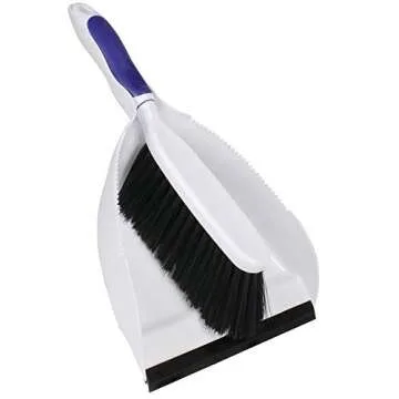Rubbermaid Commercial Products Dustpan and Brush Set with Comfortable Grip, White/Black, Easy Pickup with Rubber Edge in Home/Garage