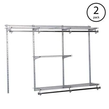 Rubbermaid Configurations 3-6 Feet Expandable Hanging and Shelf Space Custom DIY Closet Organizer Kit, Titanium (2 Pack)
