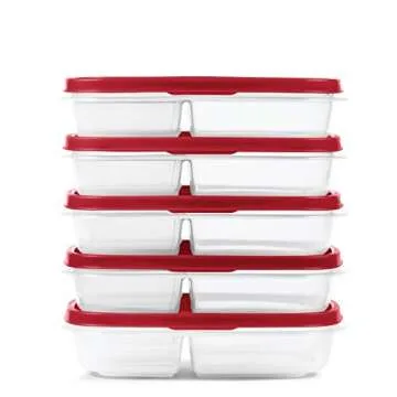 Rubbermaid EasyFindLids Meal Prep Containers, 3 Compartments, 5.1 Cup, 5 Pack