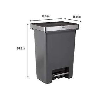 Show moreIntroducing the Rubbermaid Premier High-Capacity Step-On Trash Can, a perfect blend of style, innovation, and functionality designed for modern living spaces. This exquisite trash can boasts an impressive 19-gallon capacity, allowing it to hold up to 50% more trash than standard 13-gallon models. This aspect not only alleviates the hassle of frequent trips to the dumpster but also makes it an essential for large families or households that produce significant waste. Imagine having a seamless waste disposal solution that fits perfectly in your home, kitchen, garage, or apartment while enhancing your decor with its sleek design.