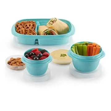 Rubbermaid TakeAlongs 2-Compartment Meal Prep and Food Storage Kit, 30 Pieces including Lids, BPA-Free Plastic, Reflecting Pool