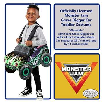 When it comes to toddler costumes, the Rubies Child's Monster Jam Grave Digger Car Costume stands out from competitors for its combination of authenticity, comfort, and vibrant design. While other costumes may lack the quality assurance of licensed products, this costume ensures the best materials and construction, offering parents peace of mind about the authenticity and safety of the costume. Unlike many generic options, this costume comes with a distinctive design tailored for adventure and fun, making it a top choice for small Monster Jam enthusiasts.
