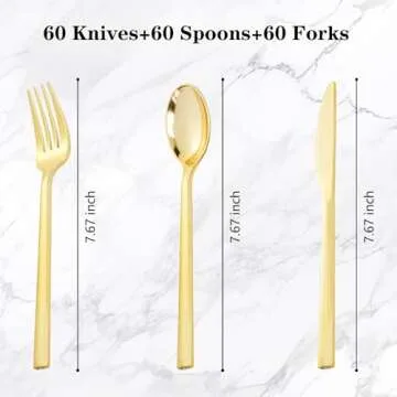 Rubtlamp 180 Pcs Gold Plastic Silverware - Disposable Plastic Utensils - Heavy Duty Plastic Forks And Spoons - Gold Plastic Cutlery Set Include 60 Forks, 60 Knives And 60 Spoons for Christmas Party