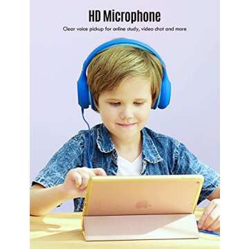 Rubussubg Kids Headphones with Microphone, Volume Limiter 85/94dB Over Ear Girls Boys Headphones for Teens with Audio Sharing, Wired Toddler Headset for Cellphone Tablet Kindle Travel School Airplane