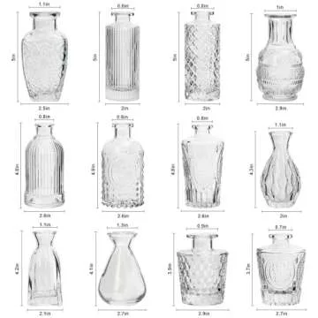 Show moreElevate your home decor with the exquisite RUCKACE Small Clear Bud Vases, available in a bulk pack of 22. These elegant mini flower vases embody a refined vintage style, perfect for infusing any setting with timeless beauty. Each vase is designed with charming etched details that glisten in the light, showcasing interior elegance whether adorning a formal wedding table or adding a casual touch to your home. Crafted from high-quality, thick glass, these sturdy vases boast a stable base and finely textured surface—ensuring they not only look fantastic but are also built to last. Bring bright blooms or delicate garden cuttings to life, adding vibrant character to your space with these stunning pieces.