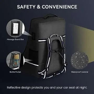 This is not just a travel bag; it's a carefully engineered solution for parents seeking stress-free traveling. Its high-quality materials and thoughtful features make it a reliable companion on your journeys, bringing peace of mind that your child’s car seat is well taken care of.