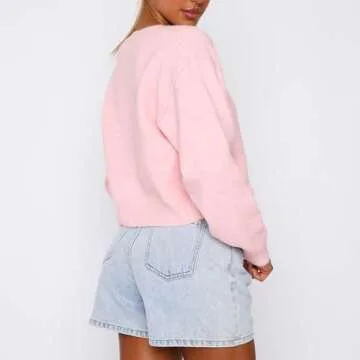 Show moreStep into retro chic style with the RUEWEY Women Y2k Crew Neck Button Down Long Sleeve Cropped Cardigan Knitted Sweater Light Jacket. This stylish piece, crafted from a premium polyester blend, offers a lightweight and breathable experience, ensuring utmost comfort while enhancing your wardrobe. The soft ribbed knit and open front design make it a standout addition for any fashion enthusiast looking to infuse a vintage touch into modern outfits. Available in a charming pink hue and designed to flatter, this sweater is more than just clothing; it’s an elegant statement piece meant for women who appreciate whimsical aesthetics and trendy layering options. Whether it's elevated streetwear or casual chic, this cropped cardigan serves multiple styling possibilities and is perfect for creating that warm, cozy vibe without compromising on style.