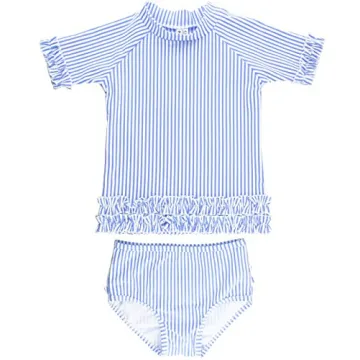 Show more Introducing the RuffleButts® Baby/Toddler Girls 2-Piece Swimsuit Set, a delightful blend of style, safety, and comfort made for little girls aged 18-24 months. Crafted from high-quality, lightweight materials, this charming blue seersucker ensemble features an eye-catching ruffled design that every little one will adore. Not only is it super cute, but it provides excellent sun protection with its built-in UPF 50+, allowing your child to enjoy endless summer adventures at the beach, pool, or splash pad without fear of sunburn. Say goodbye to worrying about harmful UV rays, as this swimsuit ensures your toddler's sensitive skin is well shielded while they dive into fun!