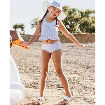 RuffleButts® Baby/Toddler Girls Periwinkle Blue Seersucker Peplum Tankini w/Ruffled Bottoms - 3-6m