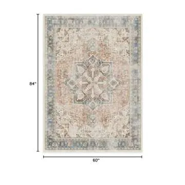RUGGABLE Kamran Washable Rug - Perfect Vintage Area Rug for Living Room Bedroom Kitchen - Pet & Child Friendly - Stain & Water Resistant - Coral 5'x7' (Standard Pad)