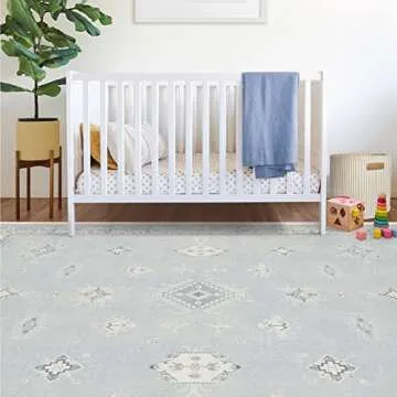 RUGGABLE Washable 8x10 Large Area Rug, Verena Soft Blue, Premium Rugs for Living Room, Bedroom, Kitchen, Office, Nursery with Gripper Non Slip Pad