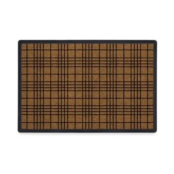 Show more Elevate your home's entrance with the exquisitely designed RUGGABLE Washable Front Entryway Welcome Door Mat in the captivating Linea Plaid pattern. This doormat isn't just a stylish accessory for your home; it’s a fusion of elegance and practicality, thanks to its sophisticated crisscrossing line design in classic black over a warm coir backdrop. This visually appealing tapestry not only enhances the aesthetic beauty of your entryway but also plays a crucial role in keeping your home clean. The top decorative layer traps dirt and debris before it enters your space, while the lower rubber layer ensures efficient drainage for rainy days.