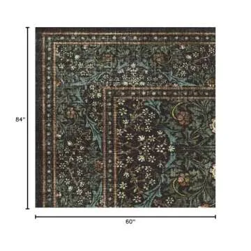 Ruggable x Morris & Co Washable 5x7 Area Rug, Blackthorn Forest Green, Premium Rugs for Living Room, Bedroom, Kitchen, Office, Classroom with Gripper Non Slip Pad