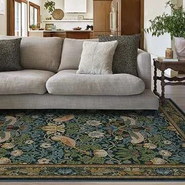 Ruggable x Morris & Co Washable Area Rug, 5x7 in Strawberry Thief Indigo - Premium Quality for Home
