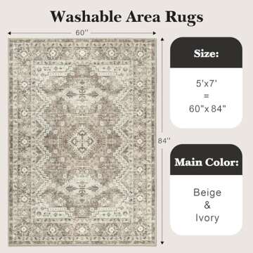Rugland 5x7 Area Rugs - Stain Resistant Washable Rug, Anti Slip Rugs for Living Room, Vintage Tribal Area Rugs(TPR07-Ivory, 5'x7')