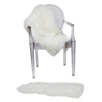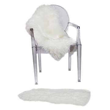 Show more Introducing the RUGLUSH Super Soft Sheepskin Chair Cover Seat Cushion Pad, a perfect blend of luxury, comfort, and style! This exceptional faux fur rug measures 2ft x 3ft, providing an extensive surface area that is versatile enough to enhance any room in your home. Its stunning white color brings an atmosphere of purity and elegance, ideal for creating tranquil and inviting spaces. Whether you plan to curl up with a book in the bedroom or need a cozy spot for the kids to play in the living room, this sheepskin rug exceeds your expectations. Why settle for anything less when you can wrap yourself in the plush embrace of faux sheepskin? Let relaxation take over as you lay down and let your mind wander.