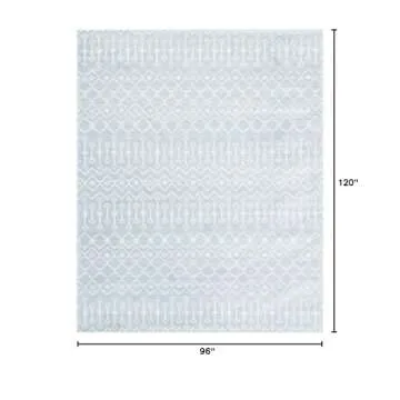 Show more Transform your living space with the stunning 8x10 Kasbah Trellis Area Rug, a perfect blend of style and sophistication. This generously sized rug is an ideal choice for large dining rooms, living rooms, or open floorplans, effortlessly elevating the aesthetic of any area in your home. The vibrant light blue color echoes the refreshing feel of a clear summer day, bringing an instant uplift to your decor.