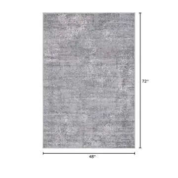 Show more Introducing an exquisite addition to your home decor, the 4' x 6' Oregon Collection Area Rug. This stunning rug is designed to withstand everyday wear, making it an ideal choice for living rooms, dining areas, and open floorplans. Crafted with meticulous attention to detail, it features a beautiful blend of soothing grays and vibrant blues that create a calming atmosphere in any space. The distressed geometric patterns offer a modern touch, allowing it to serve as a perfect backdrop for your more brightly colored décor.
