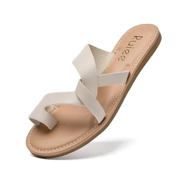 Ruiee Women's Flat Slides Sandals, Summer Flip Flops Comfort Round Open Toe Slip On Strap Thong Beach Shoes for Women.(LR22003,Beige,Size11)